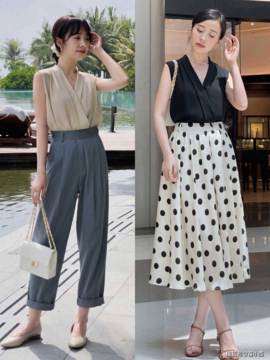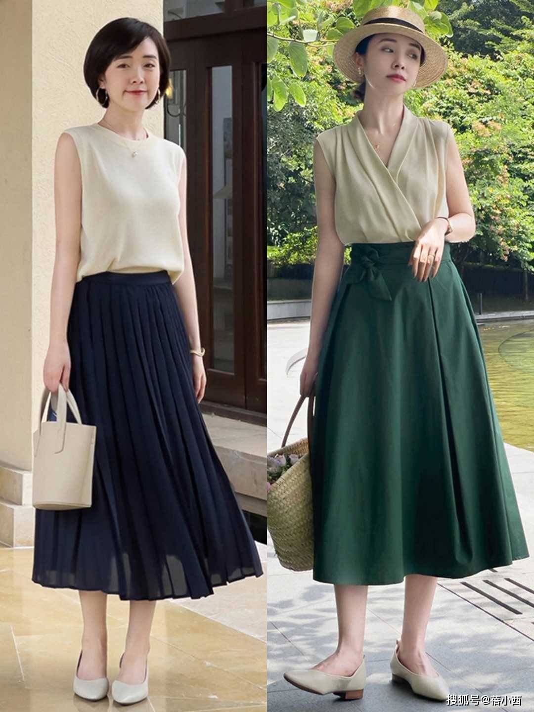 无袖上衣的搭配方式非常多样,尤其是与半身裙的组合,能够体现出女性独有的优雅。比如高腰半身裙,不仅能提升腰线,显得身材更高挑,还能展现出温柔和魅力。对于约会或者日常外出,都是非常合适的选择。