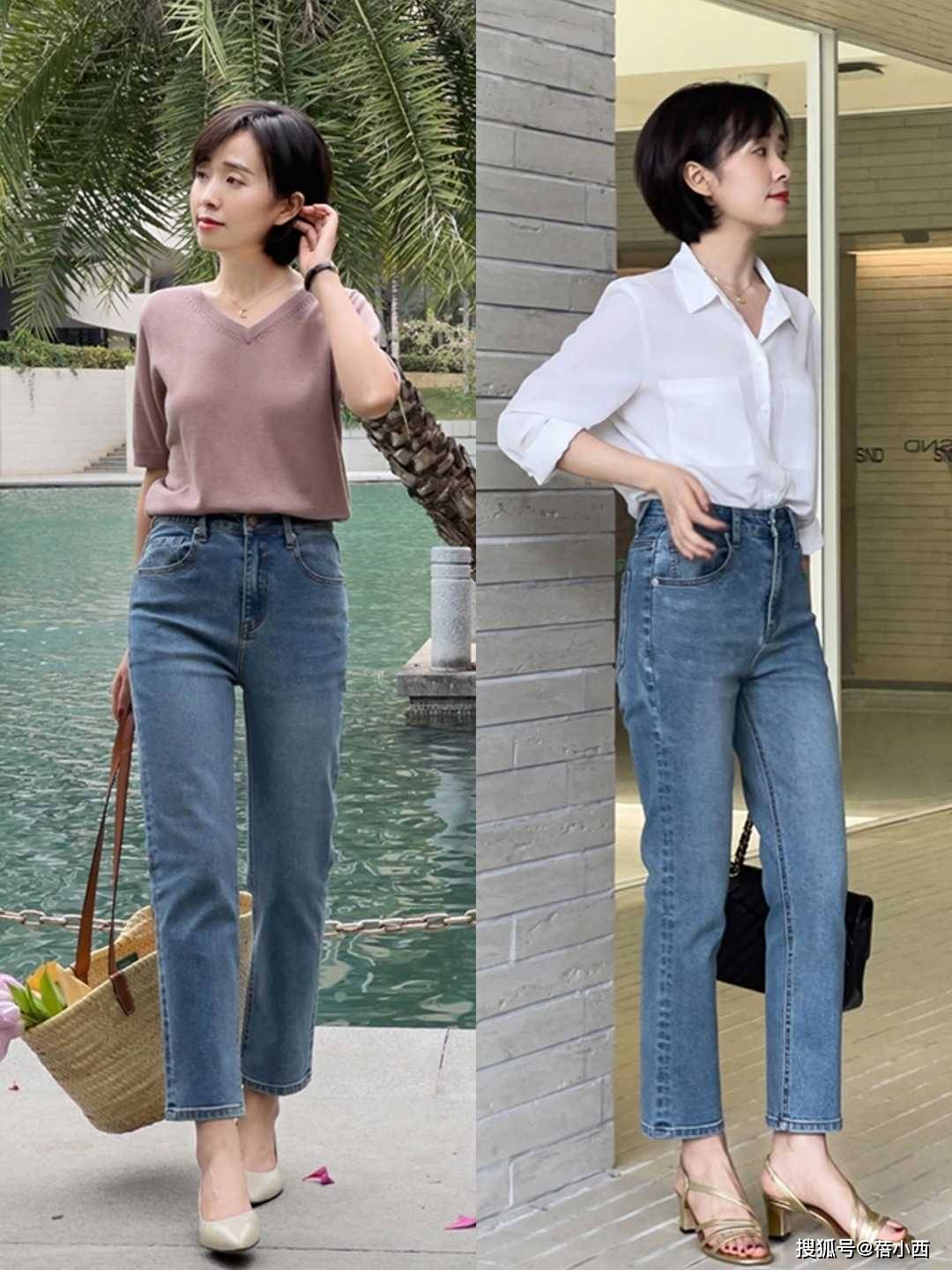 牛仔裤是一年四季都能穿的经典单品,尤其适合夏季与衬衫或T恤搭配,简单却能呈现出修长的腿部线条。九分牛仔裤能很好地拉伸腿部线条,小个子女性穿起来既能增高又显瘦。为了避免搭配过于休闲,尝试搭配一些优雅的鞋子,如高跟鞋或奶奶鞋,能让整体造型更加精致和知性。
